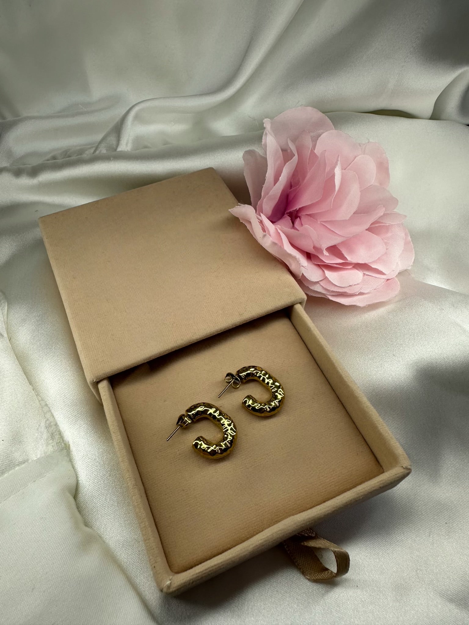 Des boucles d’oreilles chic et moderne, qui se distinguent par leur effet martelés. Un bijou raffiné à associées à tous vos looks.