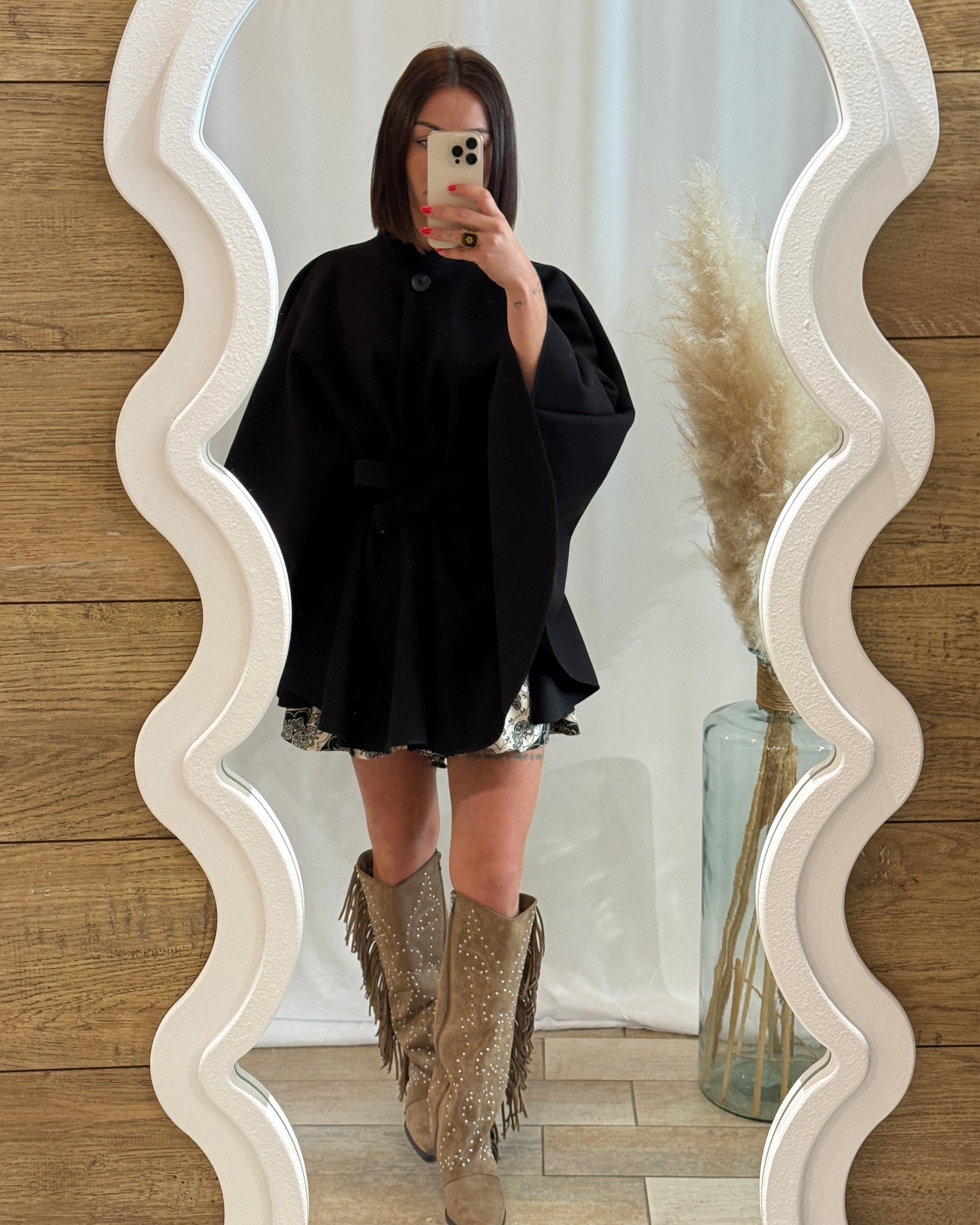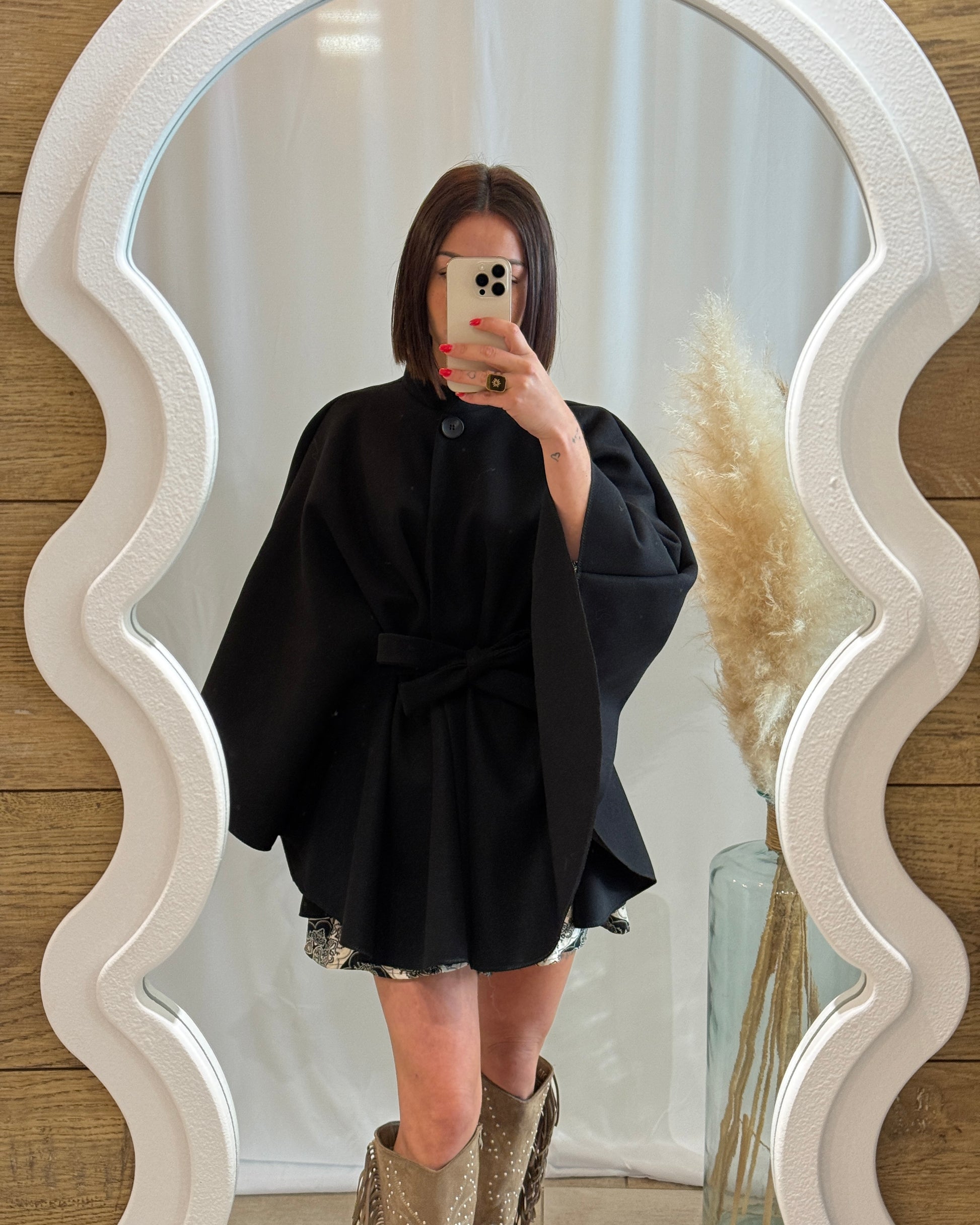 Allure chic garantie avec ce manteau cape noir femme signé La Maison de Manon.