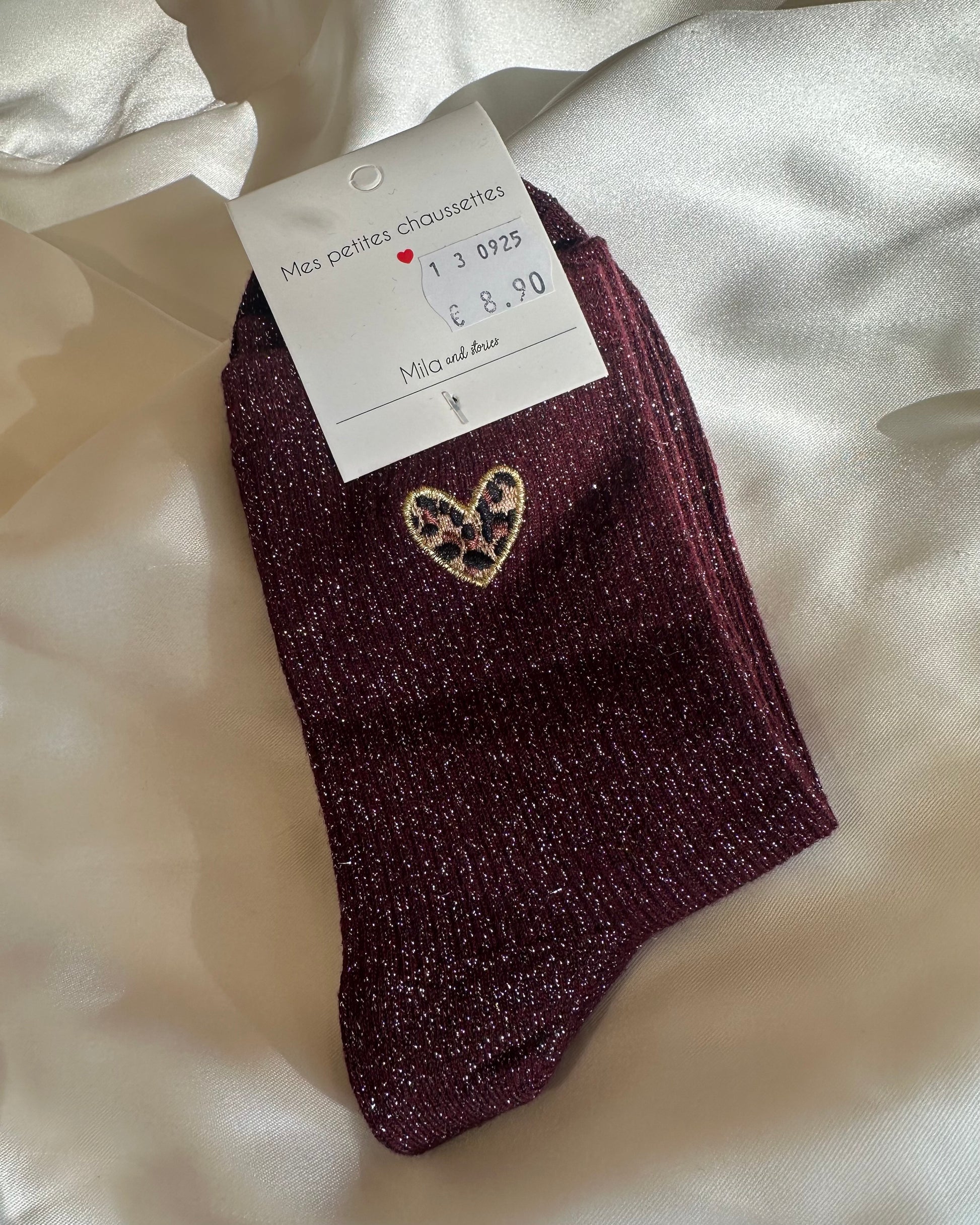Chaussettes pailletées cœur léopard – Mila and Louise