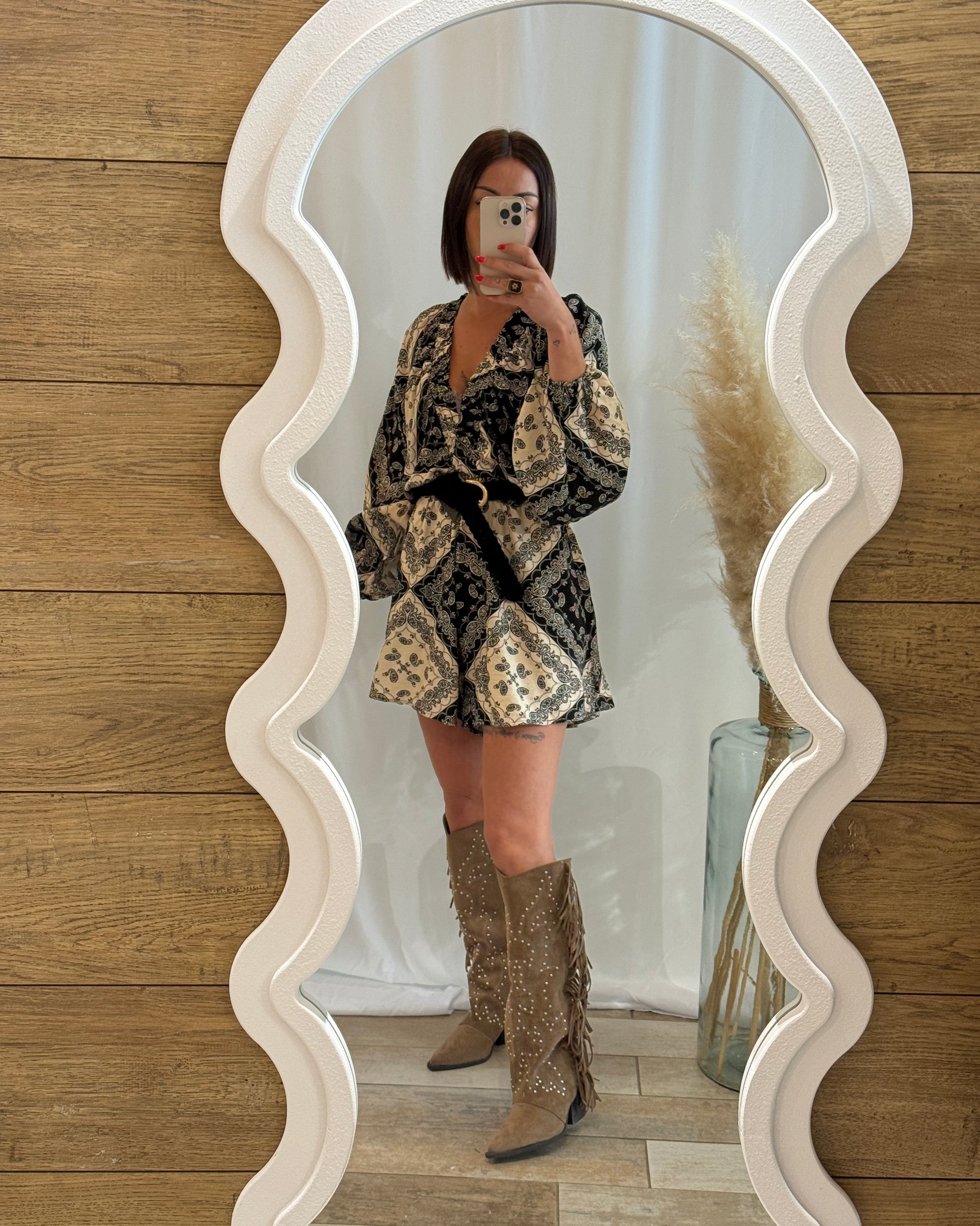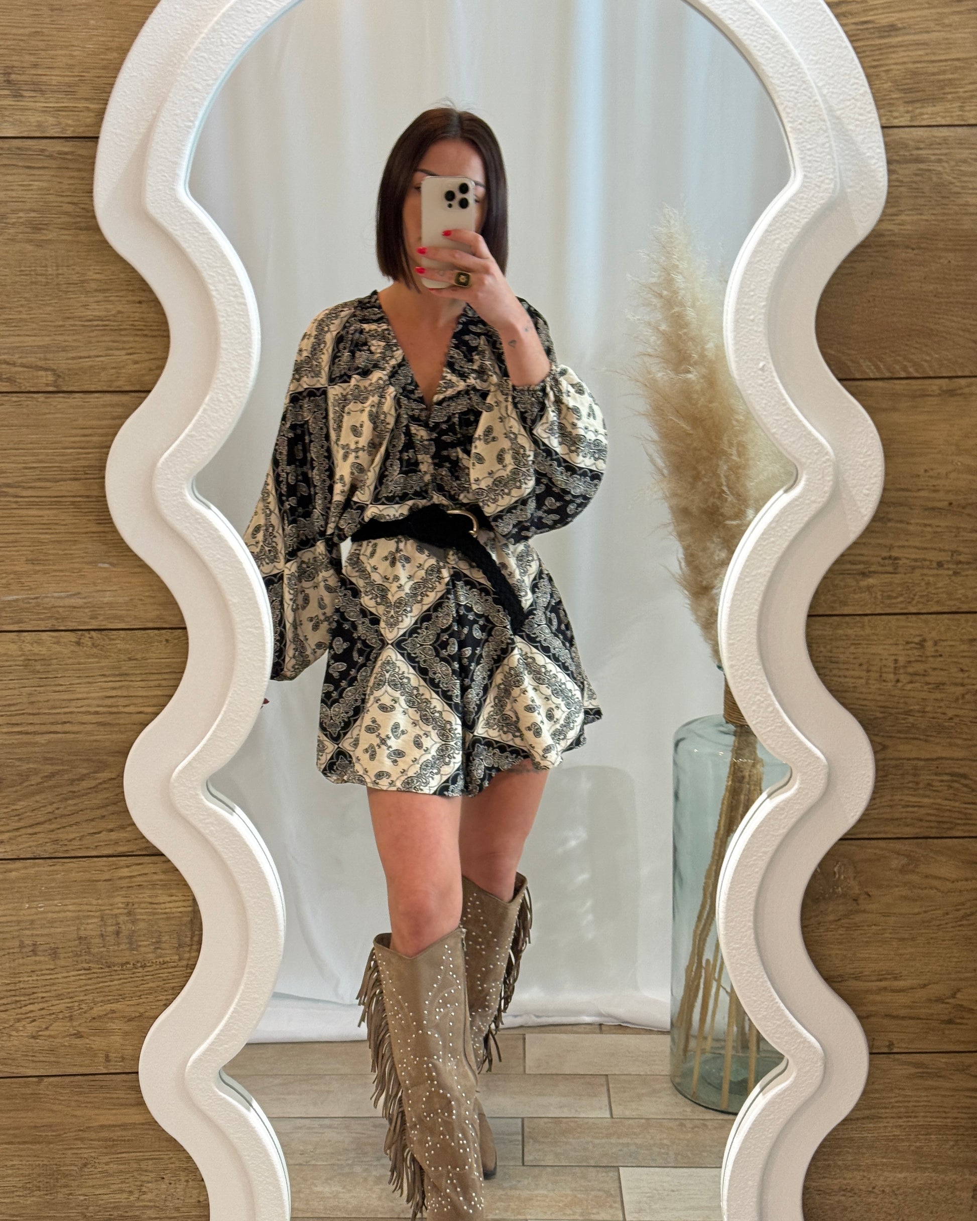 Combi-short imprimée, coupe fluide, taille cintrée. Une pièce tendance qui apporte une touche bohème à vos looks.