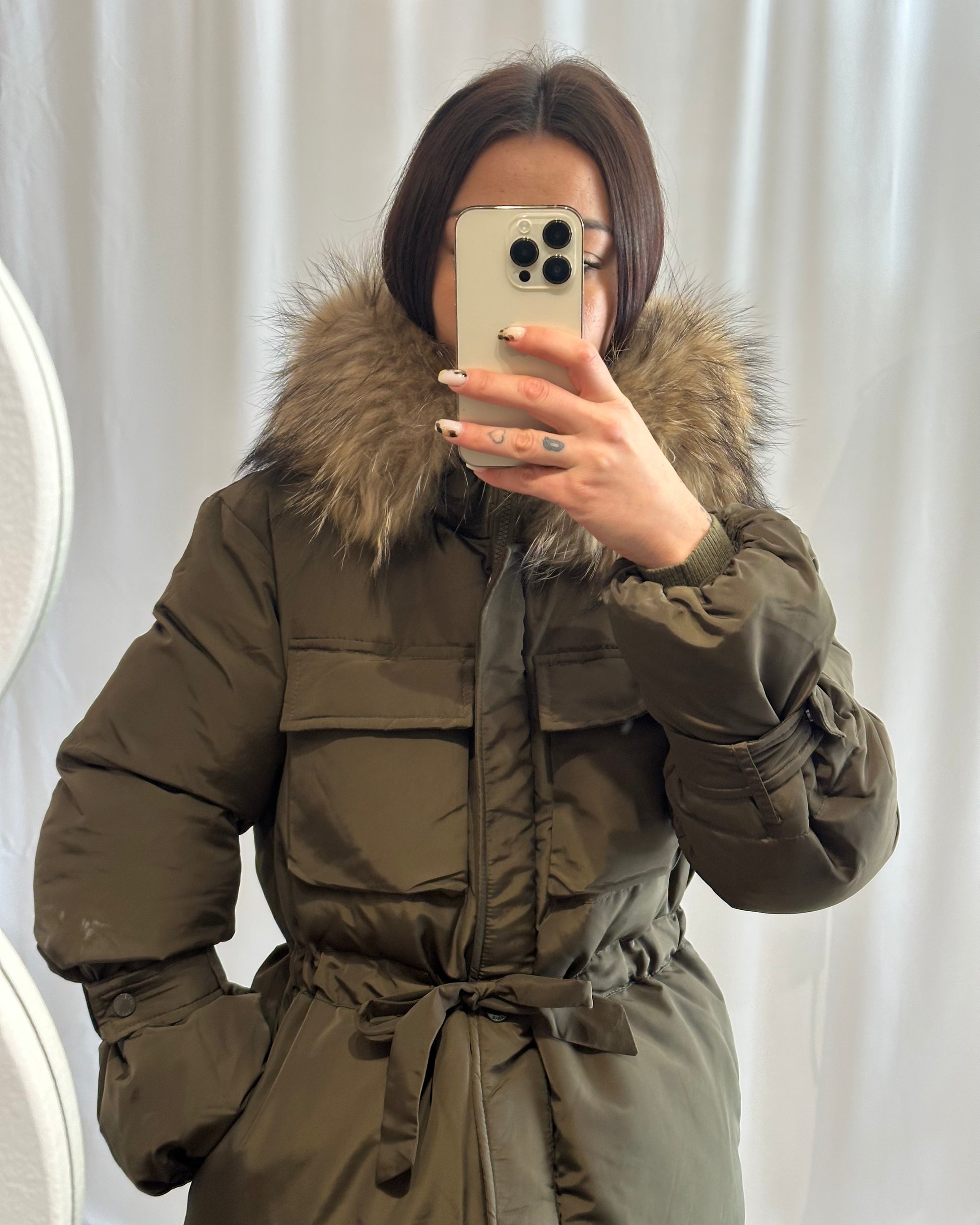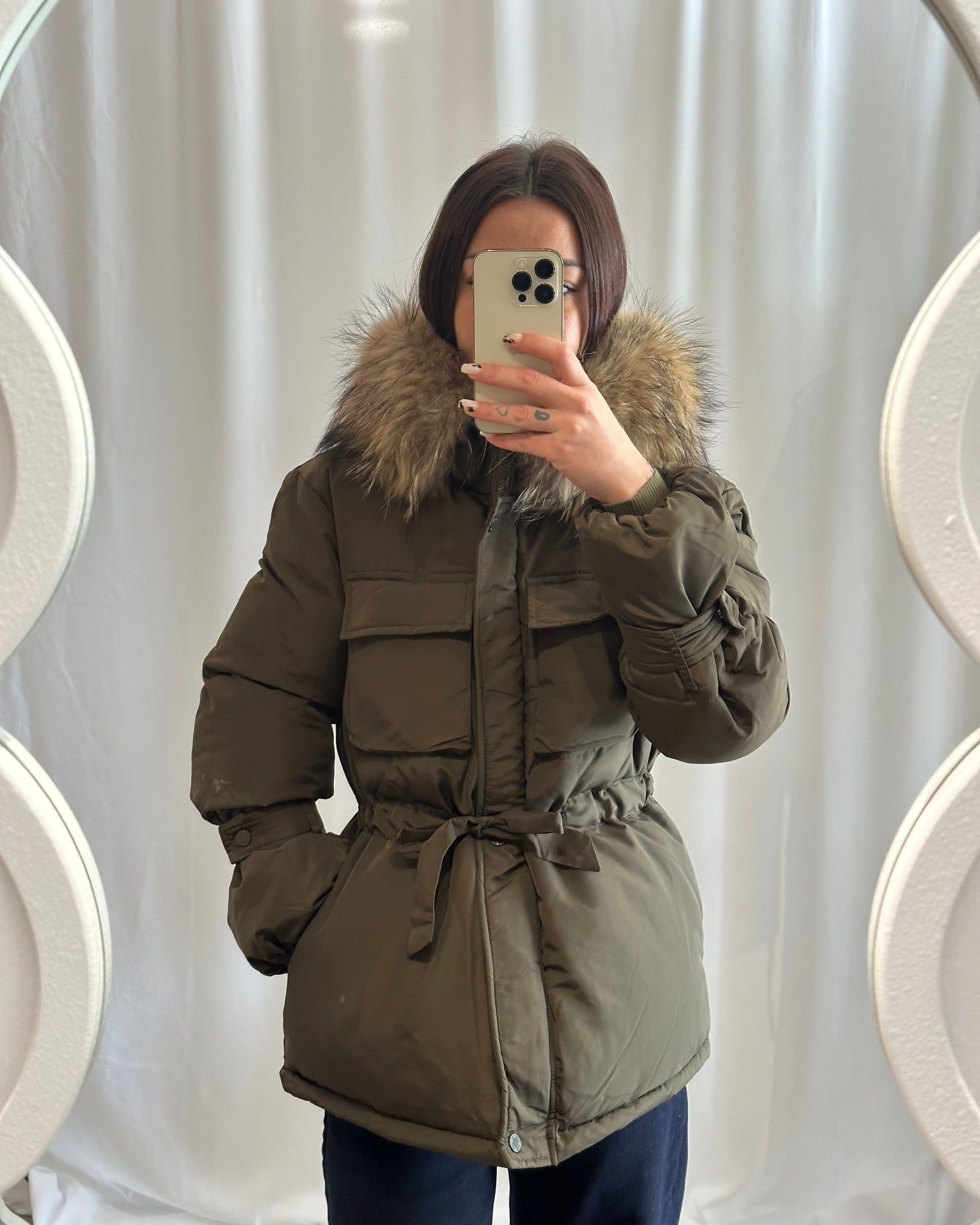 Doudoune kaki à capuche fourrure – La Maison de Manon