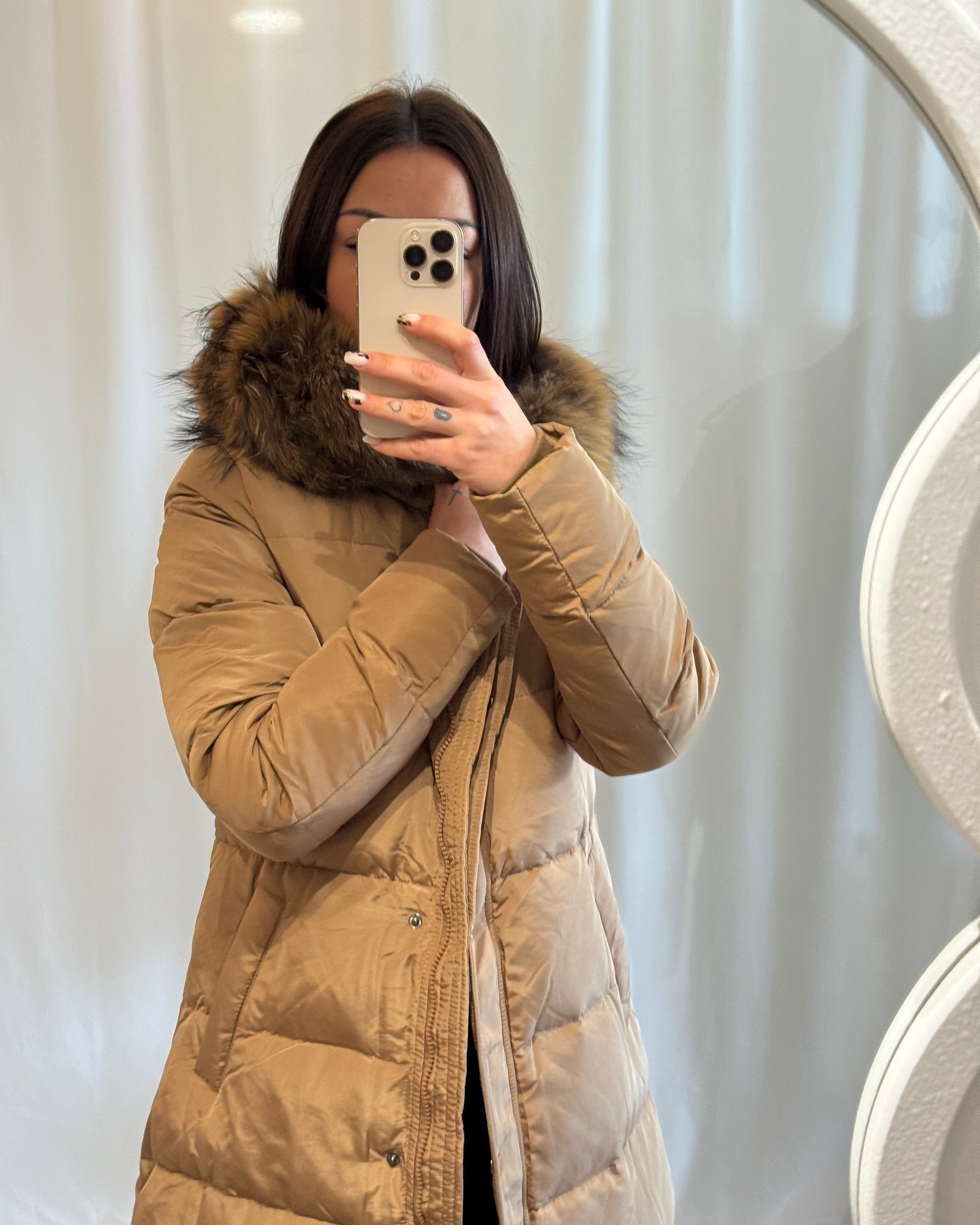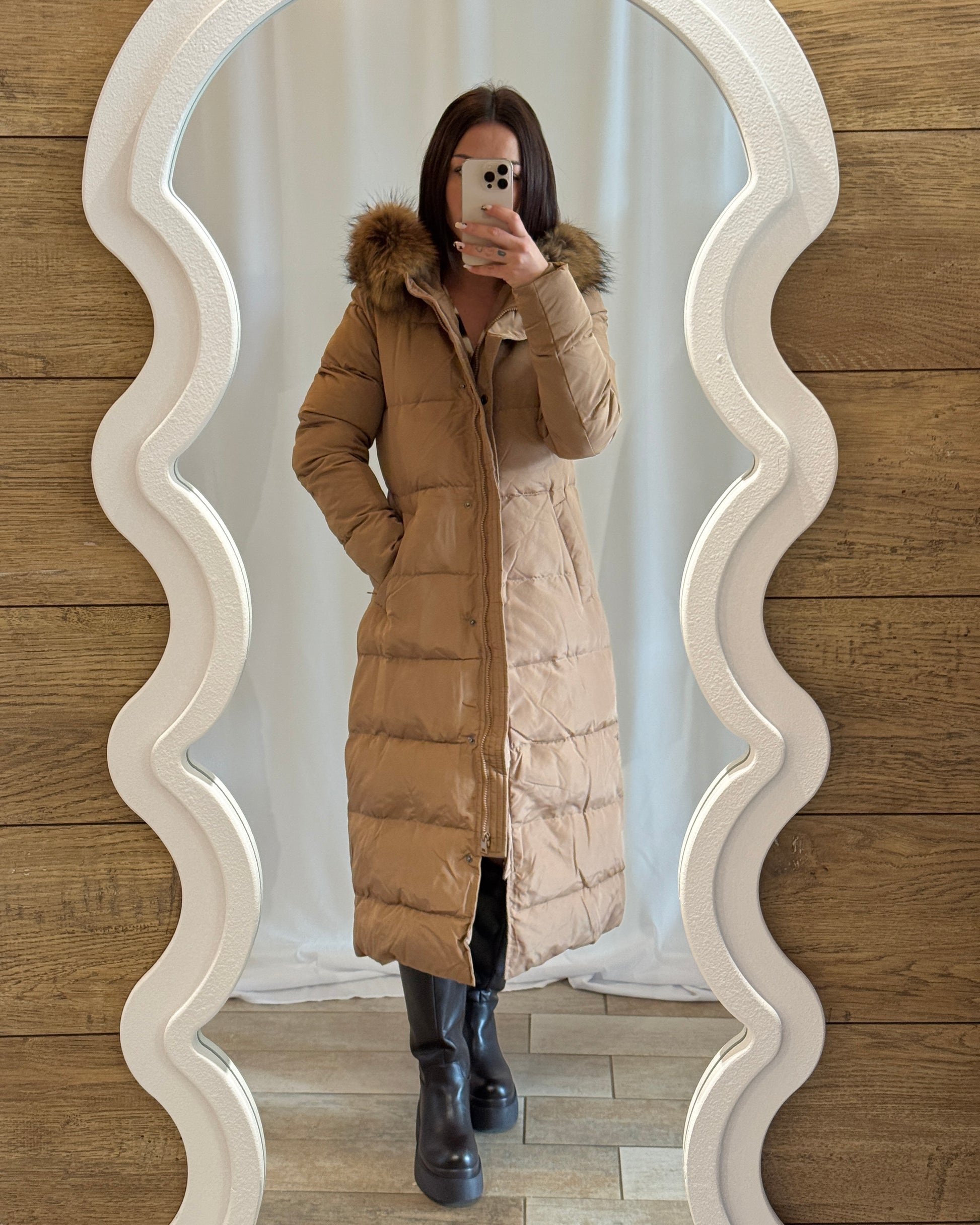 Doudoune longue camel à capuche fourrure – La Maison de Manon