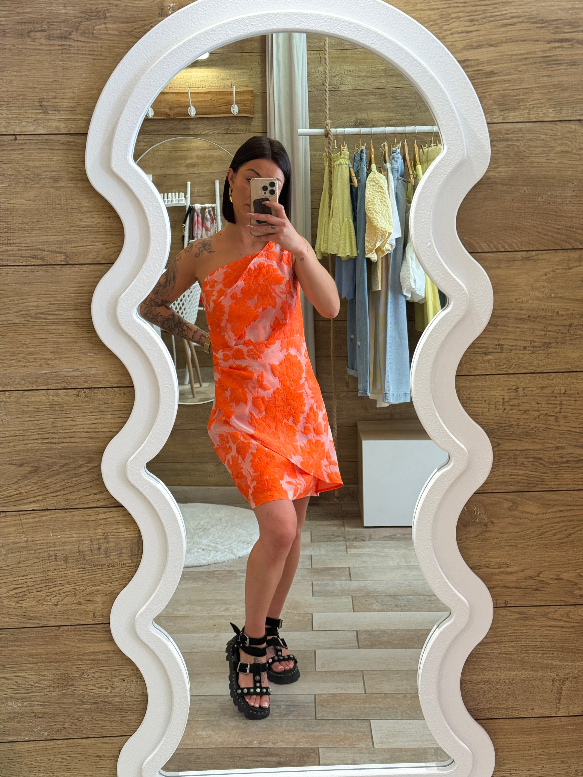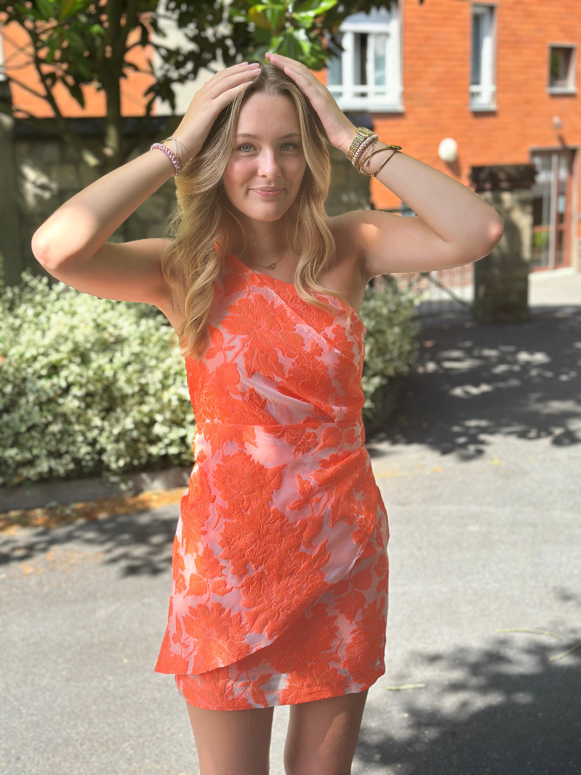 Cette robe courte orange asymétrique est un véritable coup de coeur pour la saison !