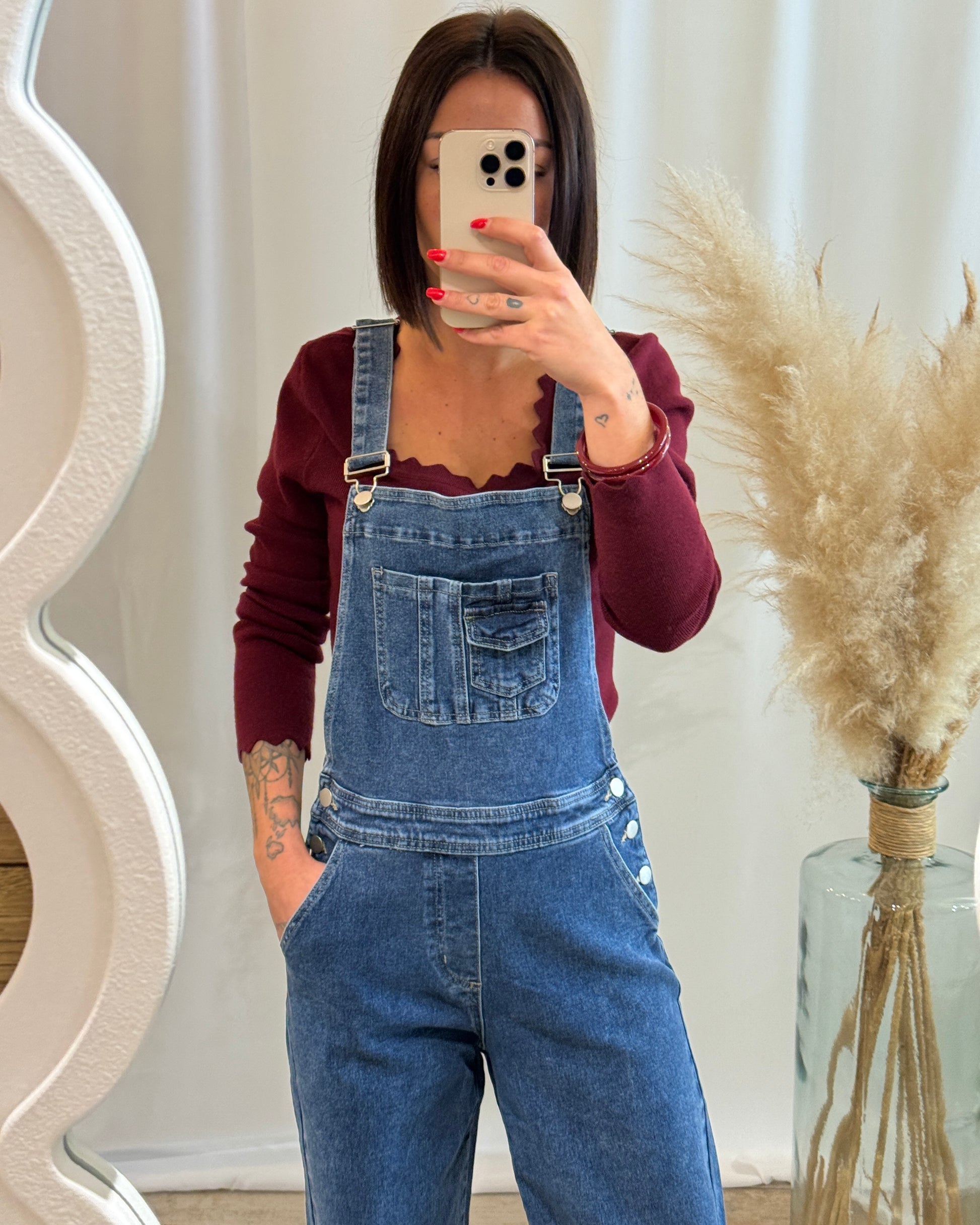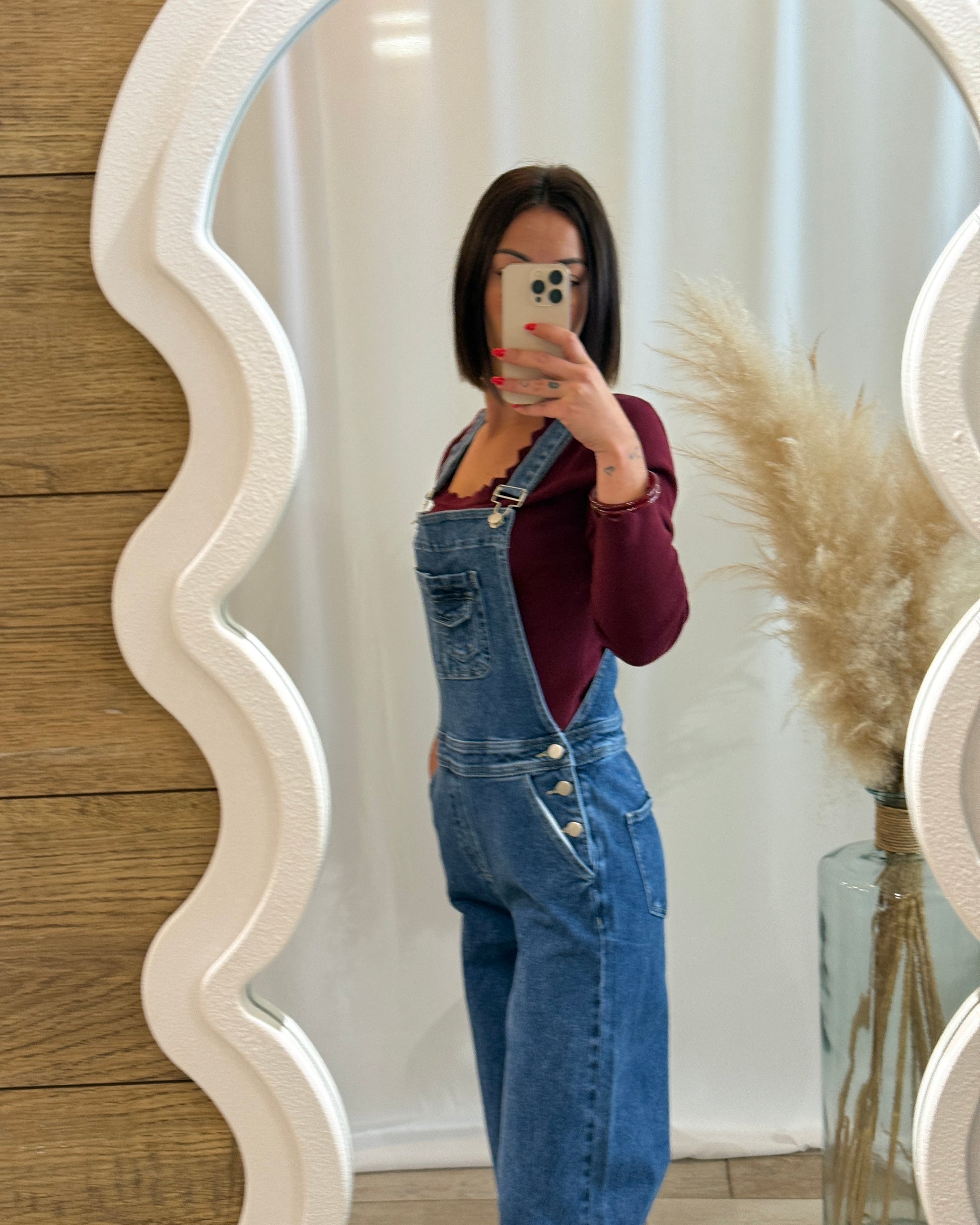 La salopette en jean femme signée La Maison de Manon est la pièce incontournable de la saison. Avec sa coupe droite légèrement ample, elle allie confort et style pour un look décontracté et tendance.